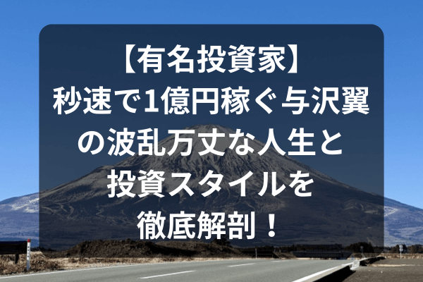 有名予想家 【有名投資家】秒速で1億円稼ぐ与沢翼の波乱万丈な人生と投資スタイルを徹底解剖! 「秒速で1億円稼ぐ男」として話題をさらった与沢翼。その波乱万丈な人生と、破産から再起した驚きの投資スタイルを徹底解説。仮想通貨、不動産、株式に分散投資する現在の姿から学べることとは? 有名予想家
